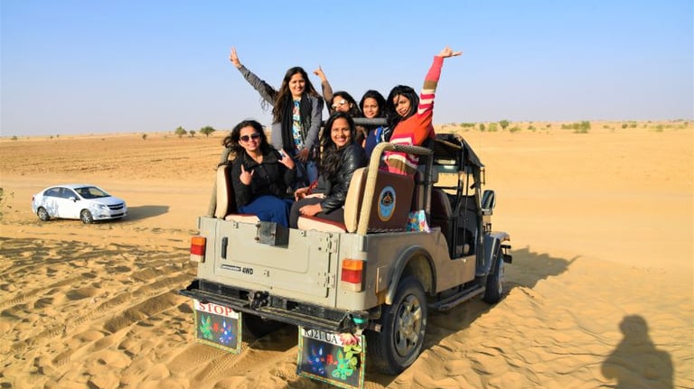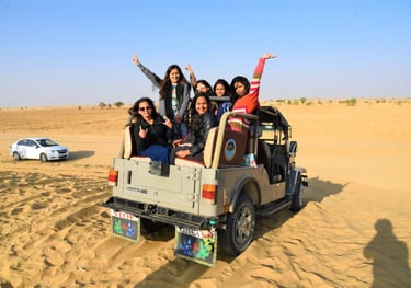 Enjoy an exciting Jeep Safari experience arranged by Hotel Triv Jaisalmer. It is a thrilling way to explore the beautiful sand dunes of Jaisalmer.